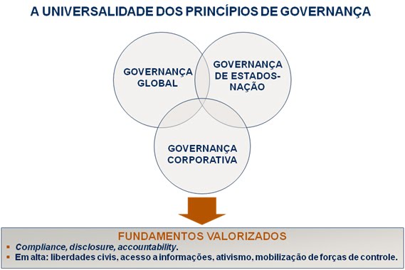 A base ética da governança consiste nos princípios. Por sua universalidade, eles estão presentes nos códigos de boas práticas hoje editados em todas as partes do mundo.